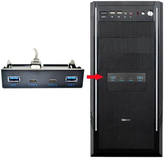 USB-C & USB 3.0 HUB 4 Ports Front Panel to Motherboard 20Pin Connector Cable for 3.5" Floppy Bay