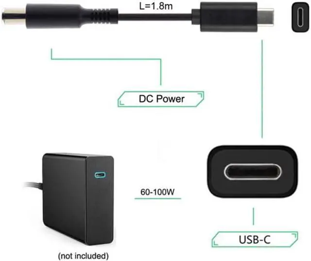 Type C USB-C Input to 5.5 * 2.1 mm Cable for Laptop