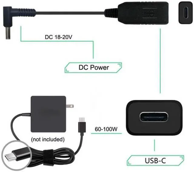 output: 4.5 mm & 3.0 mm Dell Laptop male, 18v- (not Support )