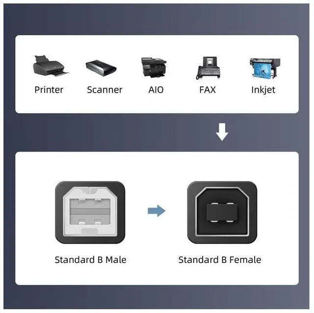 Work for USB 2.0 Type-B device like Scanner Printer Industrial Camera Robot Scanner Disk.