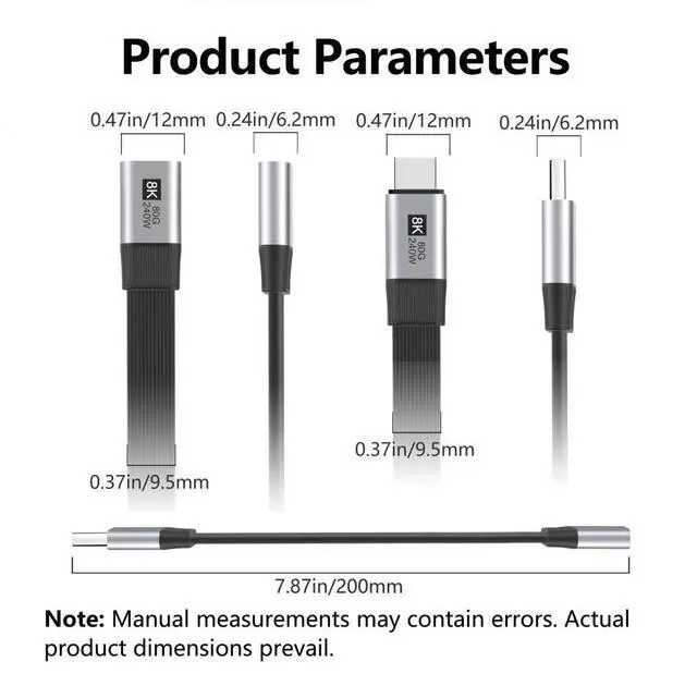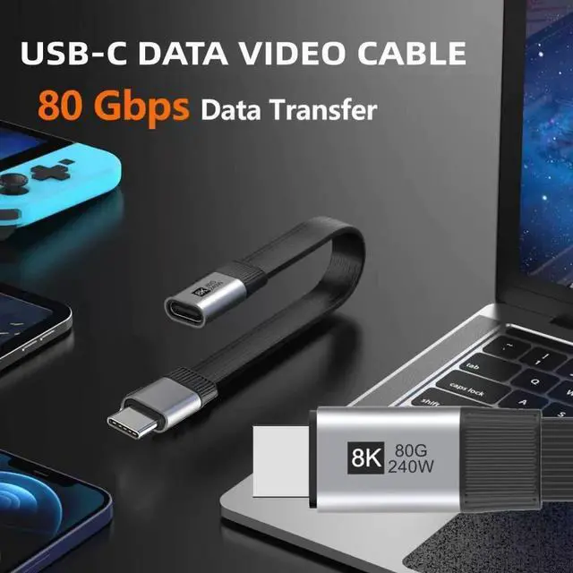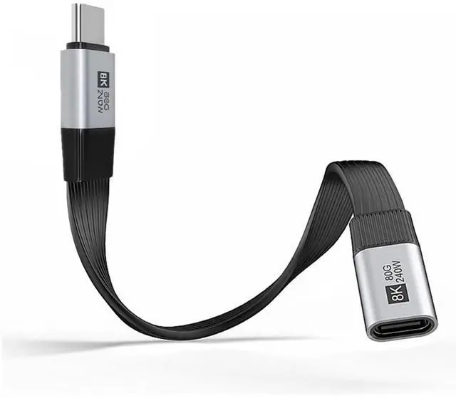20cm USB5.0 80Gbps Flat Slim FPC Male to Female Extension Cable 240W 16K 8K 60Hz 5K Compatible with 40Gbps USB4.0 Thunderbolt3/4/5