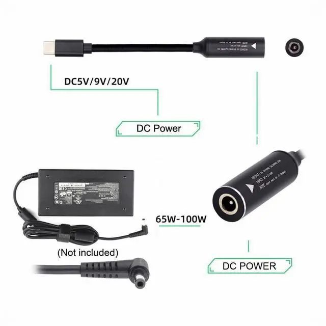DC Jack 7.9x5.4mm Input to USB-C Type-C Power Plug Charge Cable for Laptop Phone PD9V 15V 20V