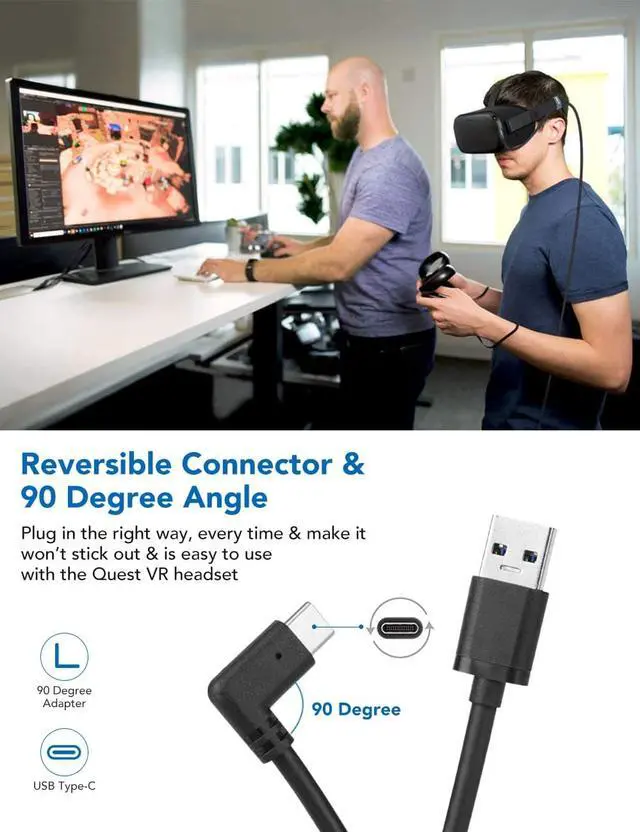 Oculus link virtual reality headset cable for quest and gaming PC, USB C to USB 3.0 / 3.1. Transfer data to and from all your USB-C devices at speeds of up to 5 Gbps.