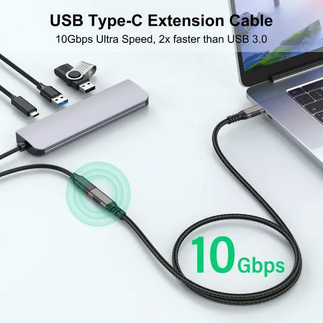 [Sturdy and Durable]: The usb c extension cable is made of the nylon braided material as the climbing rope, 10, 000+ bend, which is making the cable more flexible and wear-resistant.
