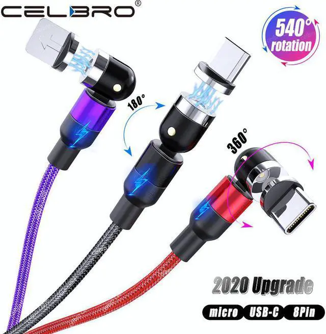 540°Rotating Magnetic Cable Micro USB Type C Charging Cable for S20 S10 Note 10 Plus Mi 10 Pro Magnet Cable 1M/2M