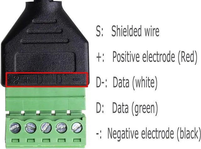 Plastic & MetalFeatures:Micro USB plug to 5 pin screw shield terminal, for charging extension function, easy to install