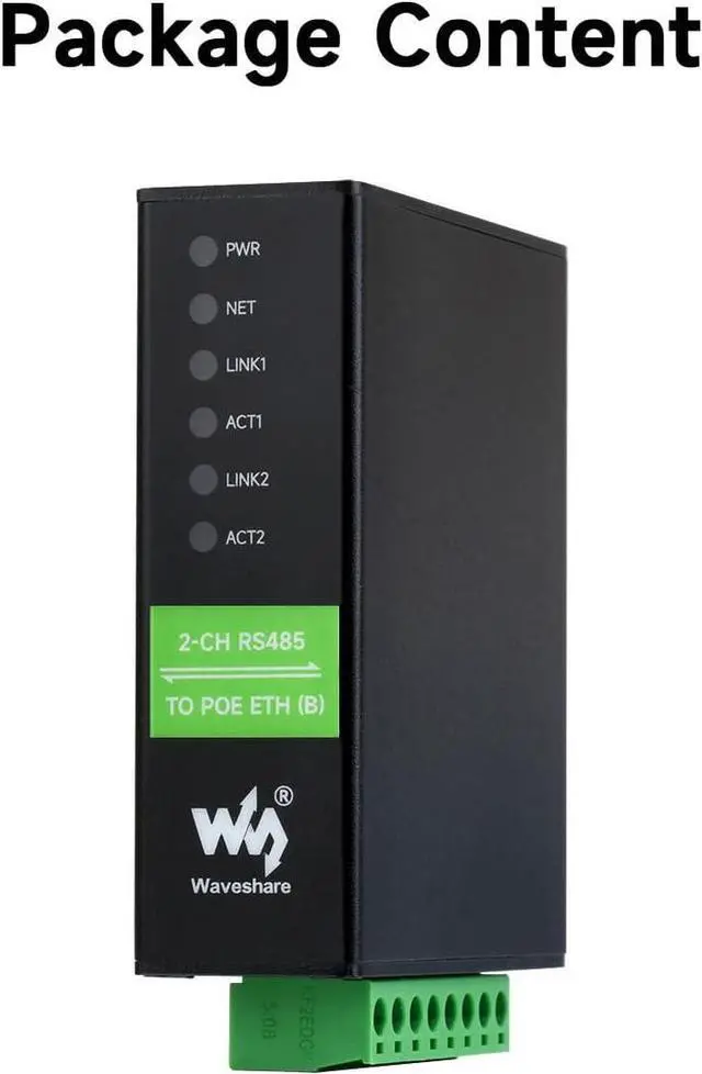 This is a 2-ch RS485 device data acquisitor / IoT gateway designed for the industrial environment. Dual RS485 can work simultaneously without interfering with each other. It combines multi functions in one, including serial server, Modbus gateway, MQTT gateway, RS485 to JSON, and network switch. The module features dual RS485 and dual Ethernet ports (PoE function optional), uses a DC port (outer diameter: 5.5mm, inner diameter: 2.1mm) and screw terminal for power input. The case with rail-mount support, is small in size, easy to install, and cost-effective. It is suitable for applications like data acquisition, IoT gateway, safety & security IoT, and intelligent instrument monitoring.