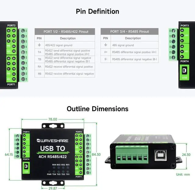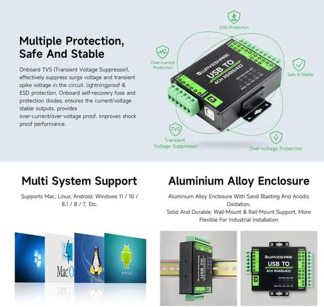 Onboard unibody digital isolation, allows signal isolation, high reliability, strong anti-interference, low power consumption. Onboard TVS (Transient Voltage Suppressor), effectively suppress surge voltage and transient spike voltage in the circuit, lightningproof & ESD protection