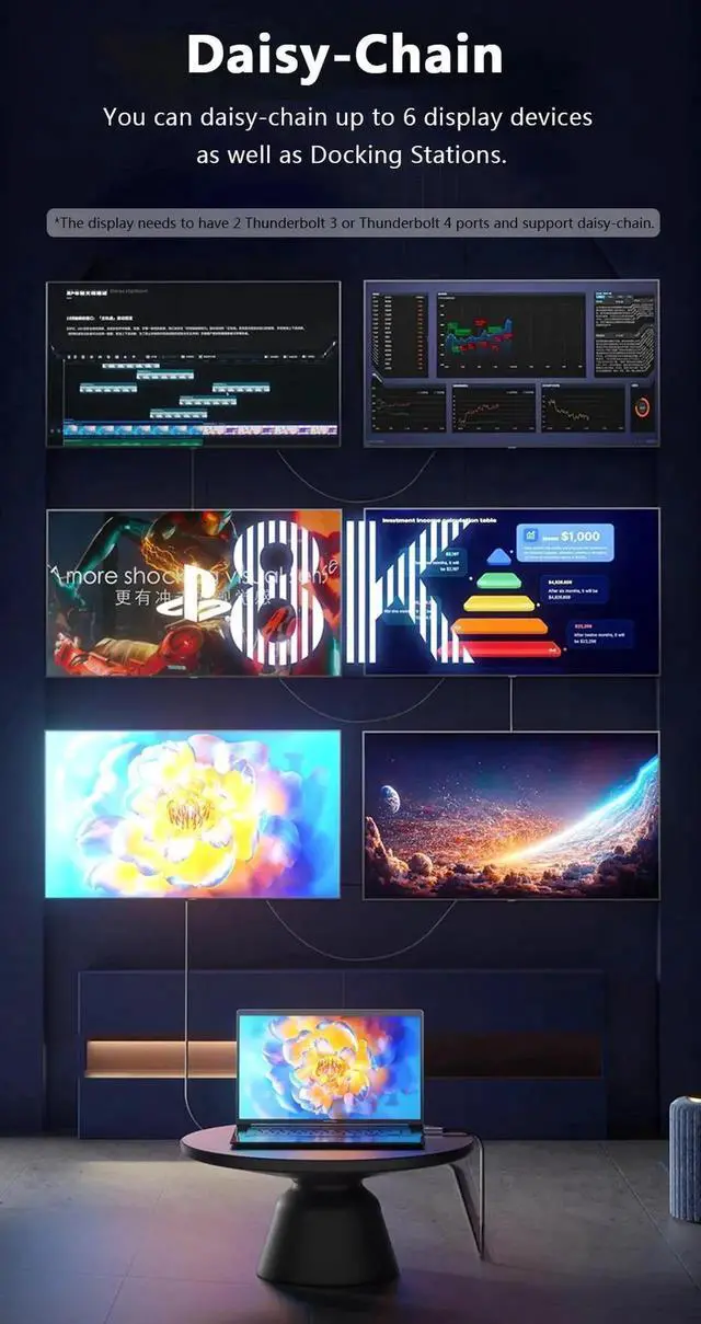 Powerful display support - This USB4 cable for thunderbolt 4 cable can drive one 8K@60Hz display or dual 4K@60Hz displays at the same time.