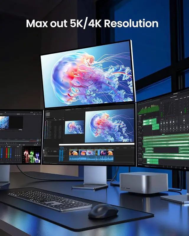 5K/4K Video Output @60Hz- Silkland USB C monitor cable supports video output up to 5K@60Hz, 4K@60Hz and 8K@30Hz from USB-C laptops to USB-C monitors. It provides a stunning visual treat for office meetings or watching movies at home.