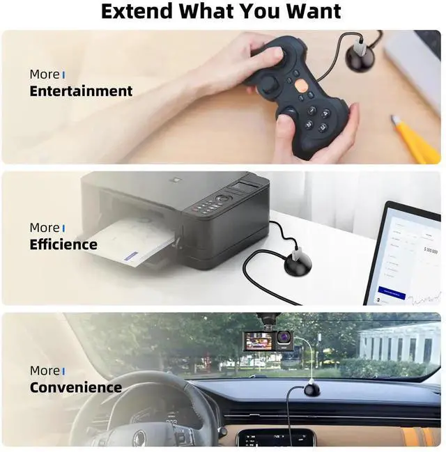 Extend your computers USB port to a more accessible location with Vszerda desktop USB extension cable. Perfect for connecting flash drives, peripherals, and other USB devices without reaching behind your PC