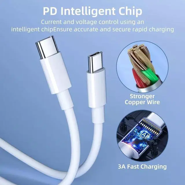 60W 3A Fast Charging & SYNC: The USB C to USB C cable can Safely deliver up to 60W/3A of power, support QC/PD fast charging, which can charge the device up to 80% within 30 minutes