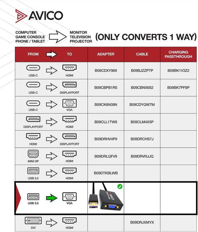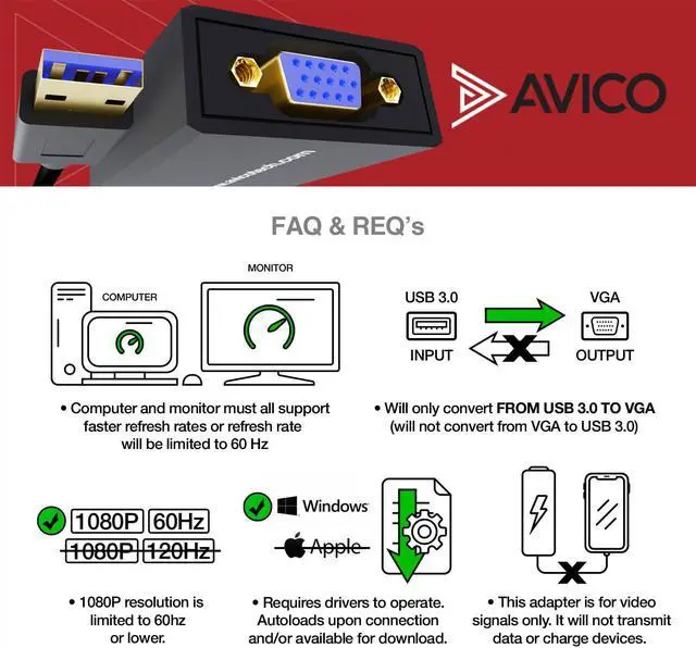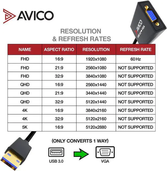 *USB 3.0 & USB 2.0 supports resolutions up to 1920x1080 with 60hz refresh rate. Full Specs.