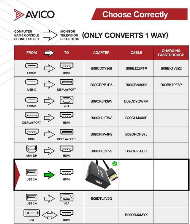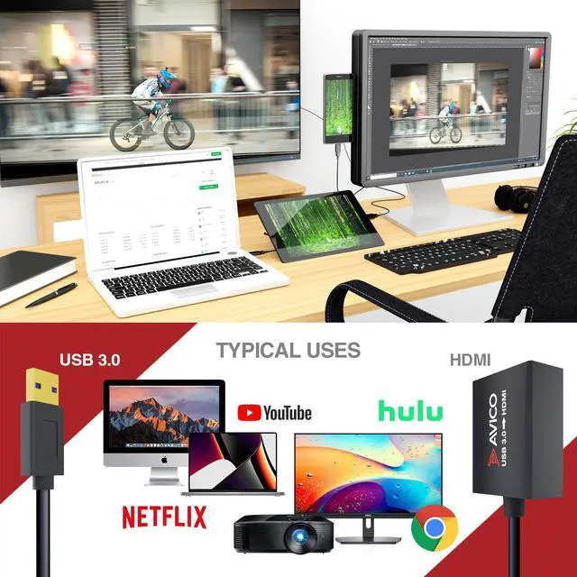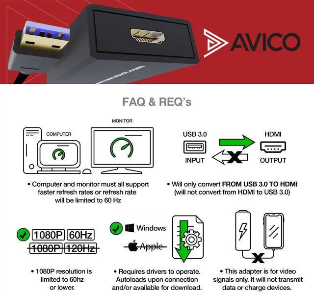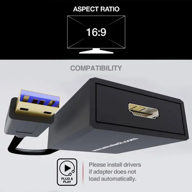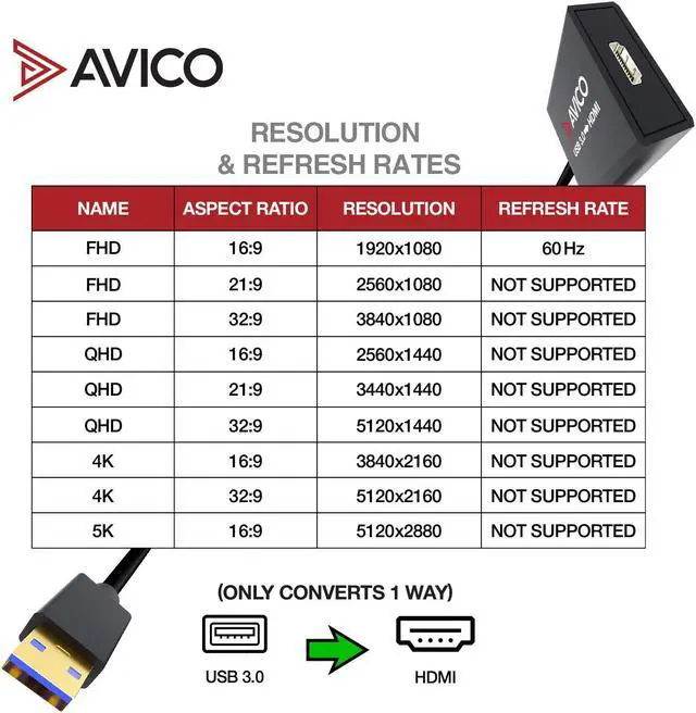 *USB 3.0 & USB 2.0 supports resolutions up to 1920x1080 with 60hz refresh rate. Full Specs.