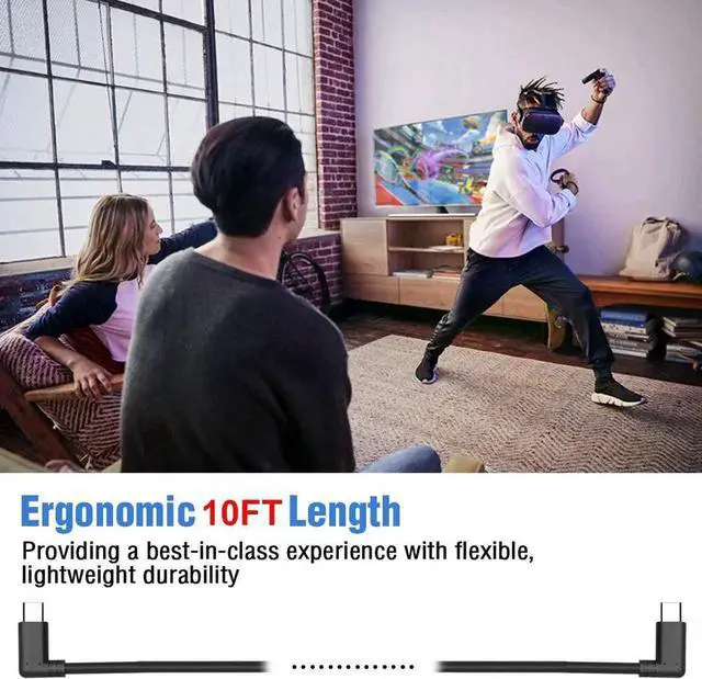 With right-angled connector end so the cable won't stick out from the side, Perfect for Oculus Quest Link...