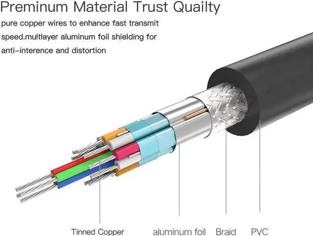 Double shielding (woven shielding + aluminum foil shielding), can greatly reduce electromagnetic interference and radio interference, and stably transmit data