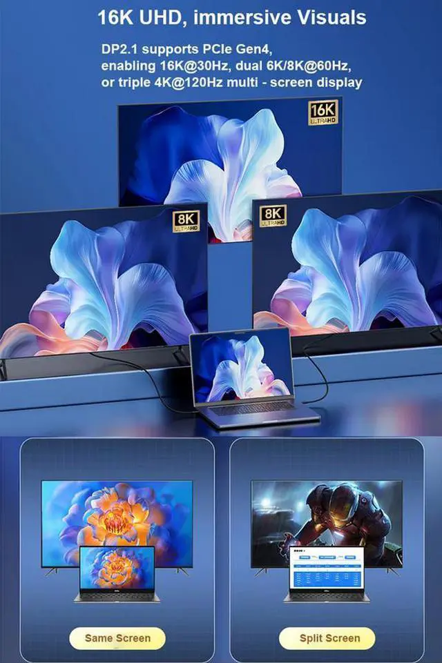 | Video Support | 16K@30Hz, 8K@60Hz HDR, 6K@60Hz |