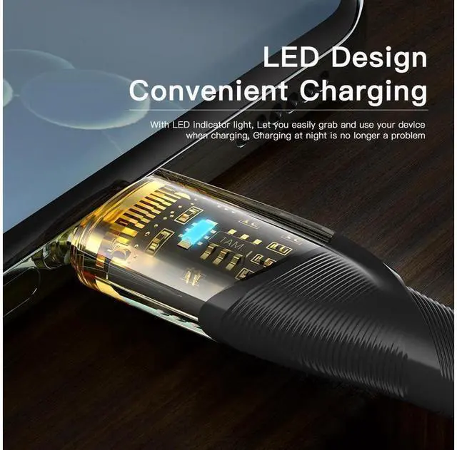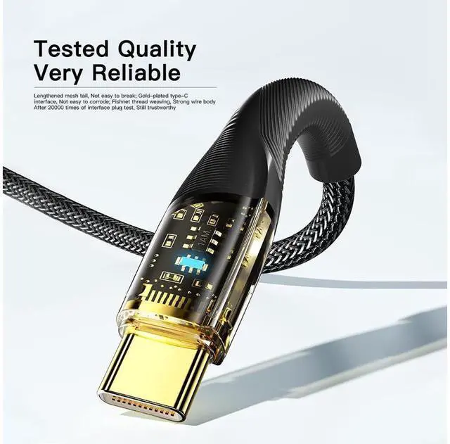 Mechanical Transparent Head: The fast charging cable connector is designed with a fully transparent shell, which is fresh and chic, and you can see the internal chip to show your personality.