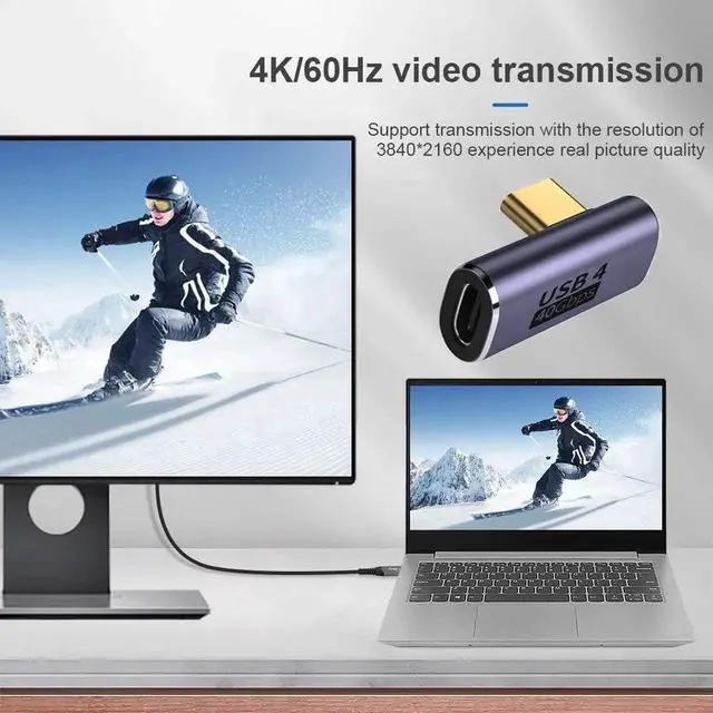 40Gbps USB4 Type C Male to Female Low Profile Right Angled 100W Power Data 8K Video Adapter