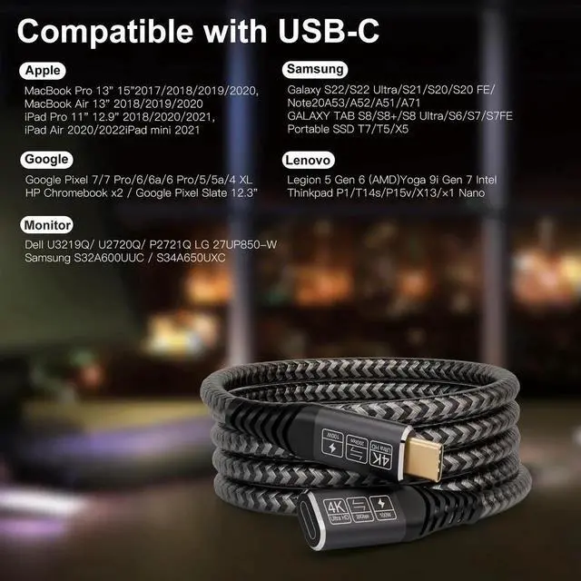 Supports High-Speed Charging Pair up with a compatible charger to power up your device at up to 100W. Transfer Files in Seconds With a 20 Gbps data transfer rate, you won't have to waste time waiting for a file to transfer slowly. Move movies, music, and large files between devices at high speed. USB C extension support up to 3840*2160 4K@60Hz video display for the connection between your Mac Book to another monitor or display with USB Type-C interface, giving you the smoothest visual experience(note:please make sure the Type C ports on both your laptop and monitor support video in and out function)
