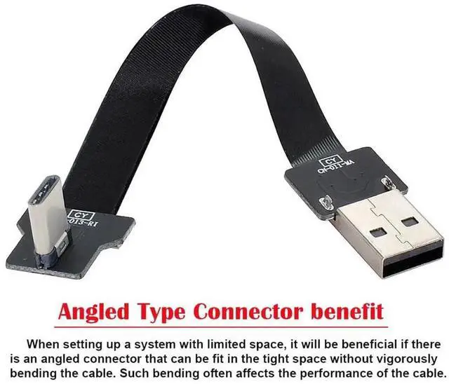 • Right Angled USB 2.0 Type-A Male to USB-C Type-C Male Data Flat Slim FPC Cable for FPV & Disk & Phone Cable length: 100cm