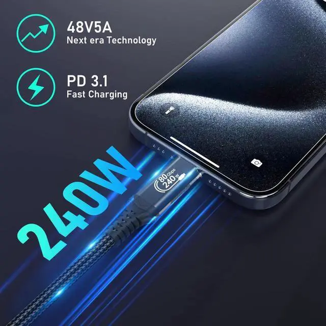 - High Power Delivery With up to 240W power delivery and support for PD 3.1, this USB-C fast charging cable is a powerhouse for charging high-performance laptops, tablets, and other devices. Simplify your workspace by replacing multiple cables and adapters with a single, high-performance solution that combines fast charging, data transfer, and video capabilities. Whether you need a C to C cable fast charging solution or a USB-C to USB-C data transfer cable, this product has you covered.