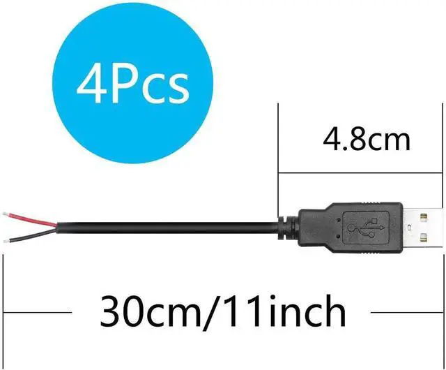 4Pcs USB A Male Plug to 2 Pin Bare Wire