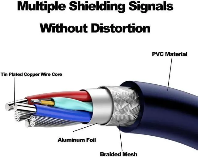 multiple shielding with Tin Plated copper wire core, aluminum foil, and braided mesh, ensuring stable and undistorted signals
