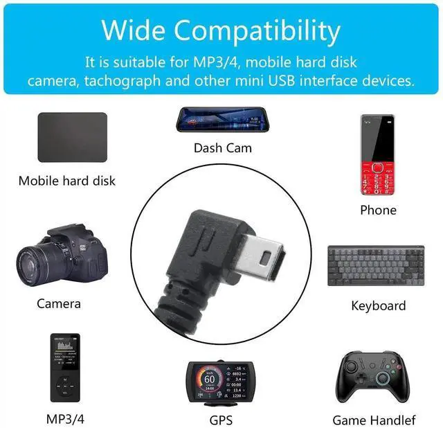 • [Wide Compatibility]USB 2.0 to Mini USB data sync and charge cable, Wide for phones, hard drive, and other devices with mini usb port, for instance: GPS, dash cam & MP3 players, digital cameras / camcorders & more.
