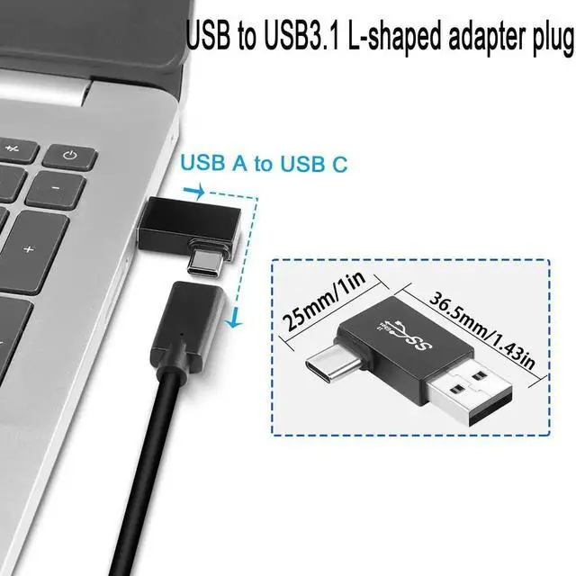 USB3.1 plug to USB C plug L-angle converter, exquisite and compact, does not take up space, can be left in the USB port without causing interference, to avoid wear and tear on the interface of the device due to repeated unplugging. Aluminum alloy casing, sturdy and durable. Easier to dissipate heat than the general plastic shell.