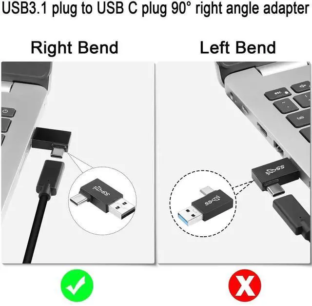 USB 3.1 male to USB C male 90° right angle converter plug, convert device USB A port output to USB C output for Wall charger, cell phone, PC, laptop, Power Bank. data transfer rate up to 10Gbps, support QC60W/PD15W fast charging. 90 degree right angle design to keep the alignment cable close to your device to avoid damage due to bending and extend the life of the cable.