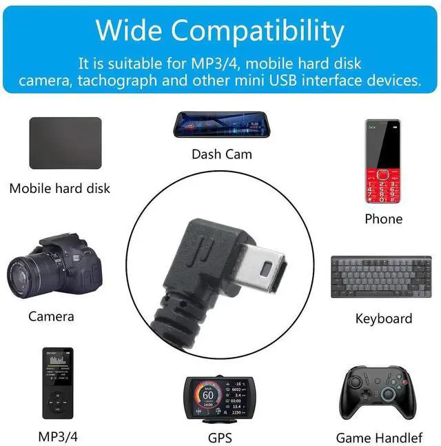 • [Wide Compatibility]USB 2.0 to Mini USB data sync and charge cable, Wide for phones, hard drive, and other devices with mini usb port, for instance: GPS, dash cam & MP3 players, digital cameras / camcorders & more.
