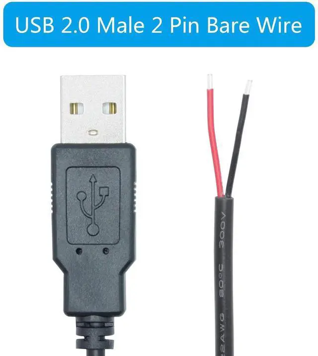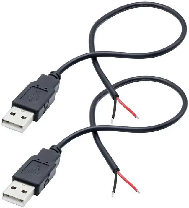 2 x short USB 2.0 Male to 2 Pin Bare Wire(30cm/11.8in)