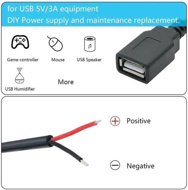 2Pcs USB A Female Plug to 2 Pin Bare Wire