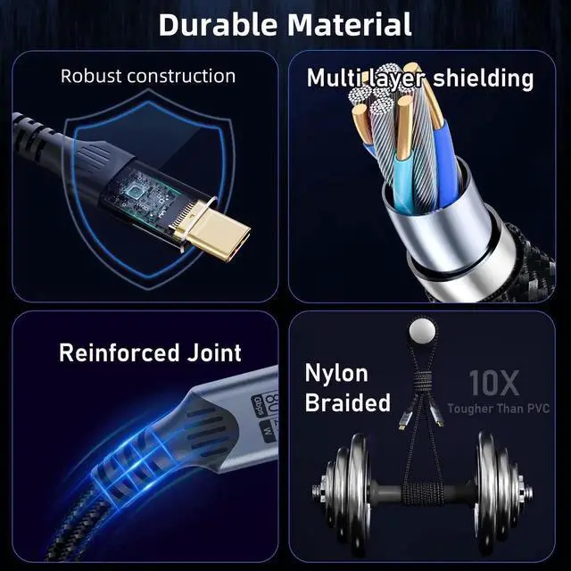 Additional Features- This USB C to USB C data cable offers an extremely powerful 240W fast charging function! Integrating PD3.1 and QC3.1 technologies, it is compatible with gaming laptops and mobile devices, enabling them to reach a full charge at an extremely high speed. It saves time and provides convenience, allowing you to charge your devices whenever you need to