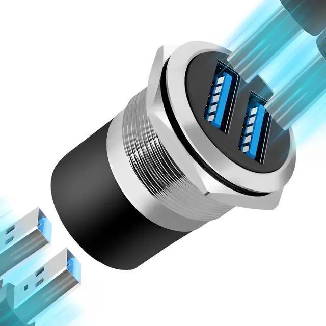 [Dual USB 3.0 Ports for Enhanced Connectivity]: Featuring two USB 3.0 ports with independent channels for simultaneous operation without interference, this threaded fixing round connector socket ensures efficient data and power handling for multiple devices.