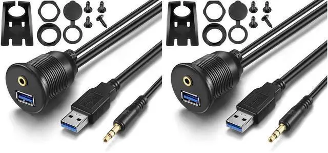 GOLD PLATED 3.5MM MALE to 3.5MM FEMALE and USB 3.0 MALE to USB 3.0 FEMALE FLUSH MOUNT EXTENSION CABLE, this could be used in car, marine, bike or motorcycle. Accessories such as bracket, flush mount components, screws & lid are included for the installation in existing socket or new hole on dashboard.