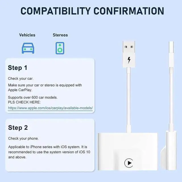 READ BEFORE BUYING: First, this product itself no provide carplay function, please make sure that your car has built-in wired Apple CarPlay. Secondly, this CarPlay dongle supports firmware updating, if it does not fully work or not working on your car, please let us know your issue first, and we will help you update the firmware and to fix the problem soon as possible.