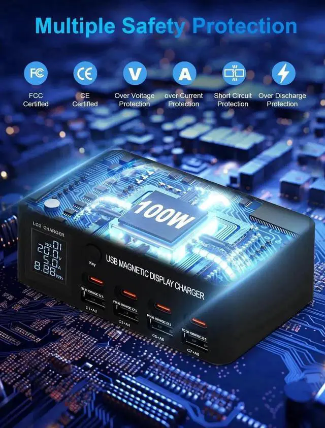 RELIABLE USB CHARGING STATION --- The charging station for multiple devices delivers reliable power management. This multiple USB charger station ensures efficient charging for all your gadgets, Making it a top choice for a Multi USB Charging Station.