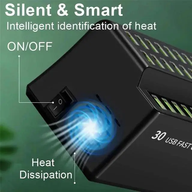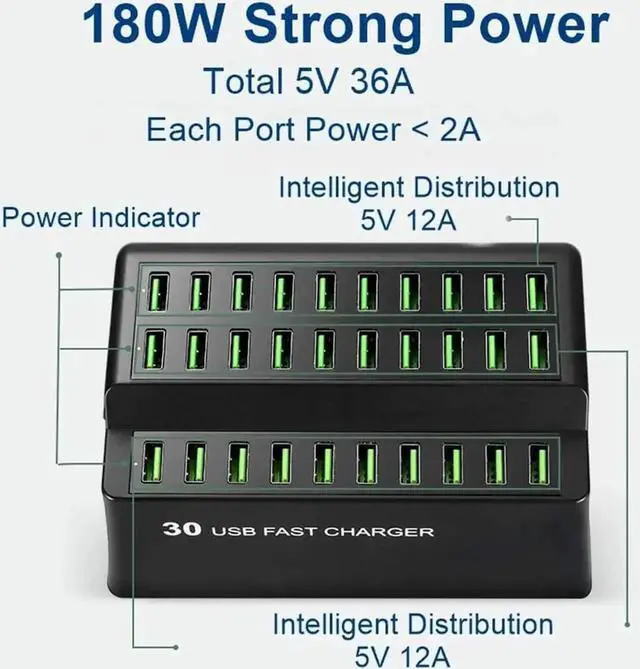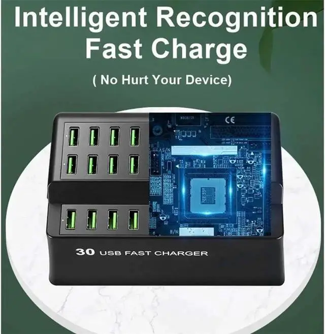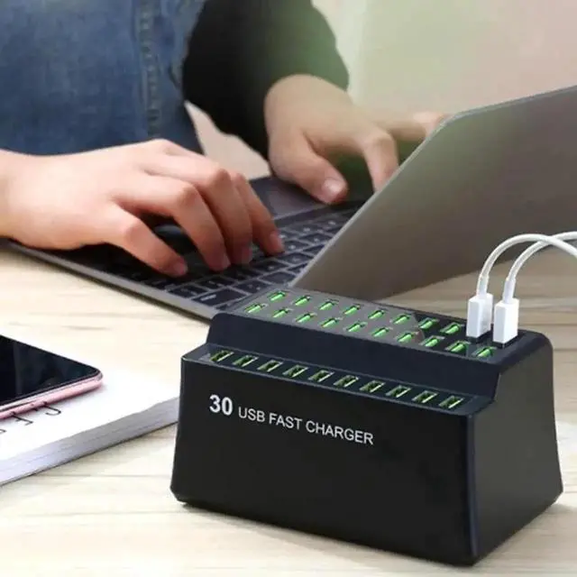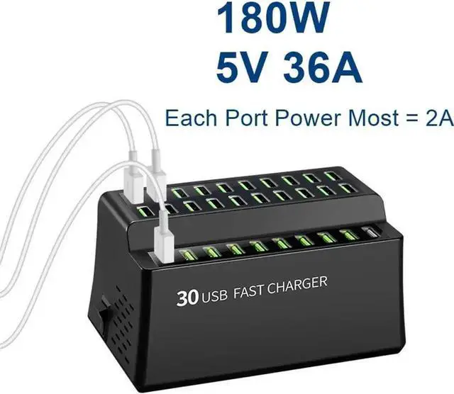 With 30 Smart USB ports, that can each charge at upto 2.4A your devices can get charged much faster then regular 1A chargers! Adaptive smart chip detects and delivers the optimal charging current for connected devices. Phone docking station protects against overcharge, overcurrent and short circuit.