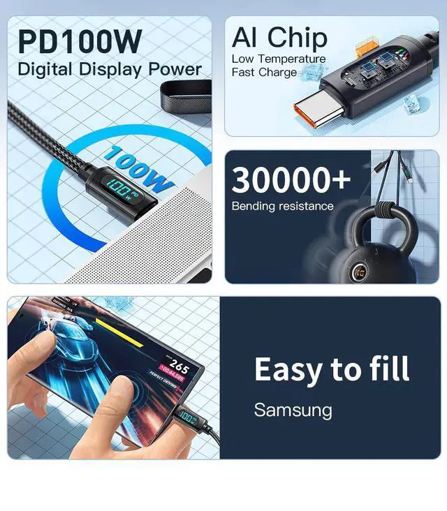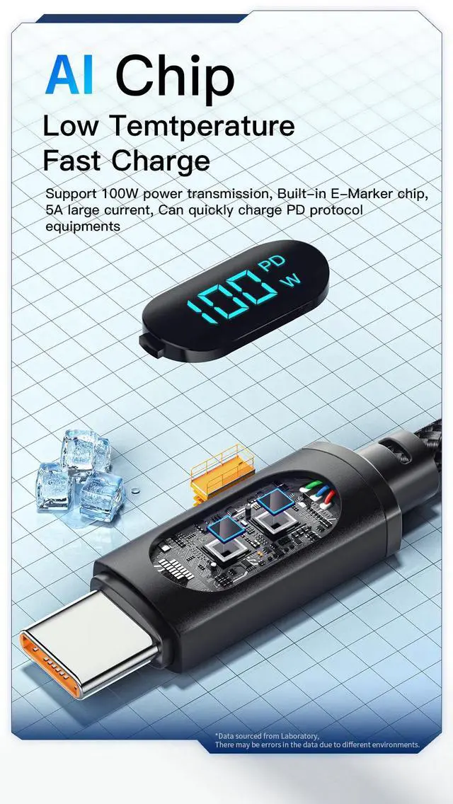 Intelligent E-Marker Chip Built-in chip manages voltage and current for safe, stable, and efficient charging without overheating or device damage.