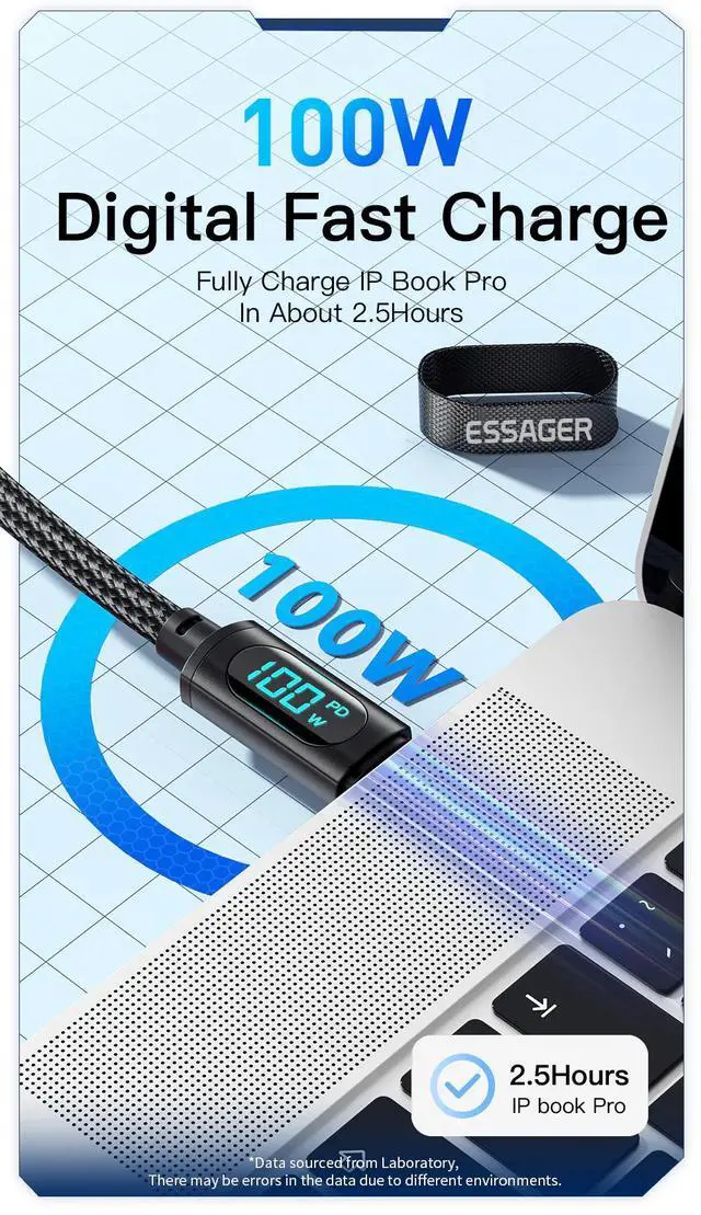 100W High-Power Fast Charging Supports QC3.0 and PD fast charging, delivering maximum speed for laptops, tablets, and smartphones.