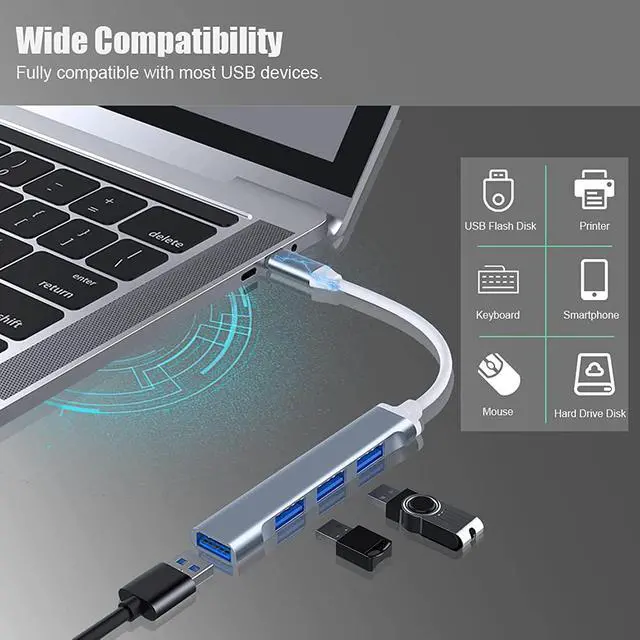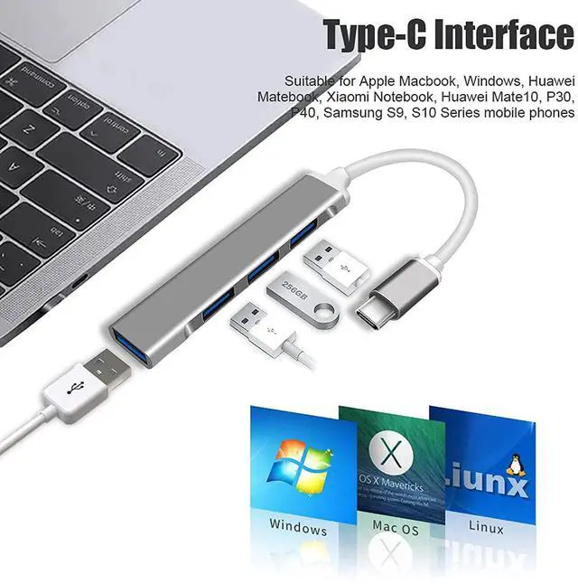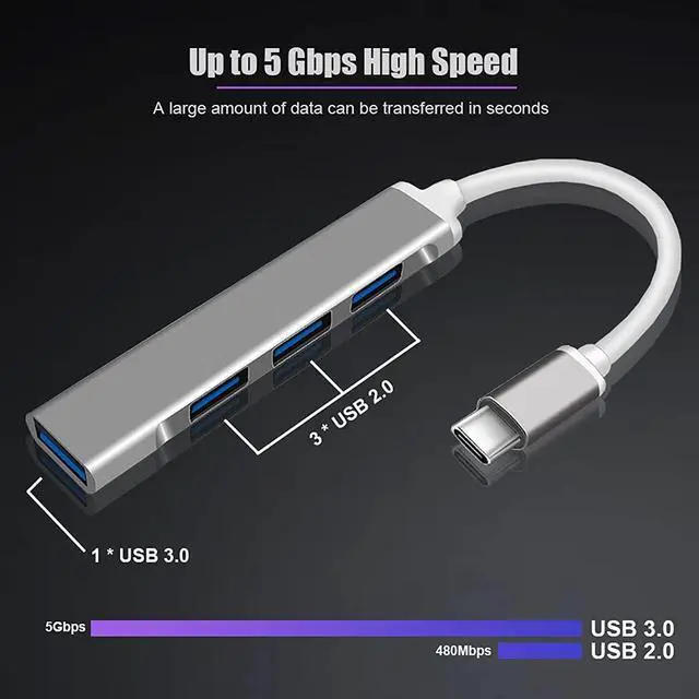 Usb C To Usb Hub 4 Ports Aluminum Usb C Thunderbolt 3 To Usb 3.0 Hub Adapter Usb C To Usb Hub With Usb 3.0 3 Usb 2.0 Ports Portable Usb C To Usb Hub For Macbook Pro Air Chromebook Otg Function