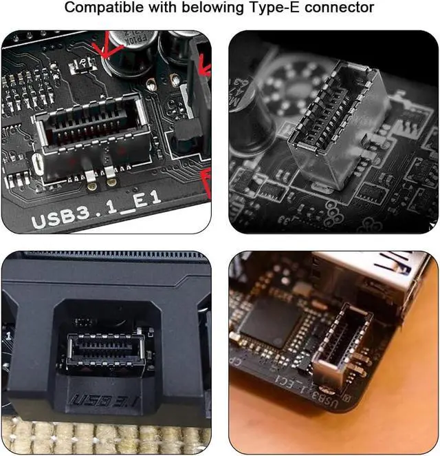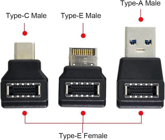 Zell Front Panel Header Usb 3.1 Type-E Female To Usb 3.0 Type-A & Type-C Usb-C Type-E Male Motherboard Extension Data 90 Angled Adapter 1Set/3Pcs