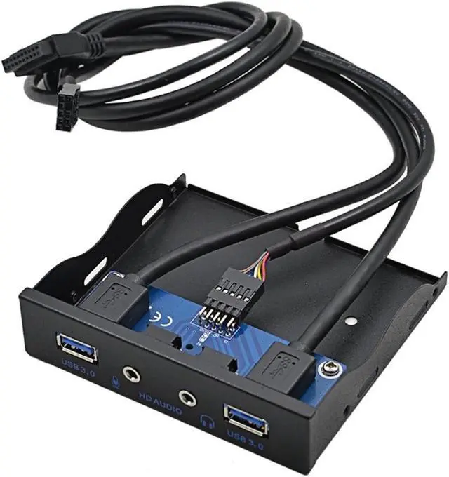 Zell 3.5" Floppy Bay High Speed 5 Gbps 20Pin 2 Port Usb 3.0 Hub Hd Audio 3.5Mm Earphone Jack Mic Interface Pc Front Panel Adapter