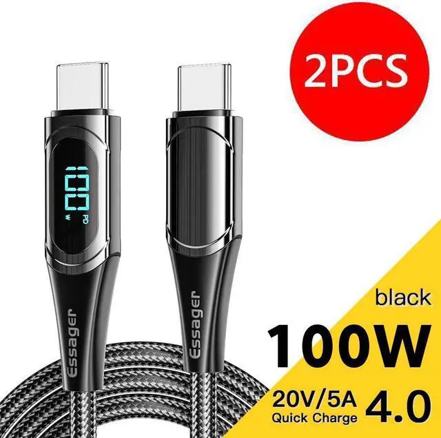 LED Power Digital Display: The USB-C to USB-C cable feature built-in E-mark chip to support high power and current(20 voltage/5 amp). With digital data display advantage, this fast charger cord can show charging status and signify high power process.