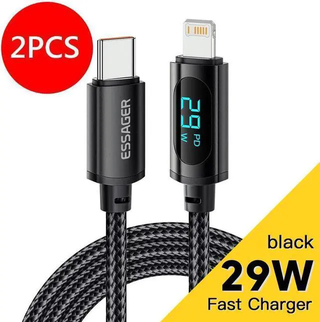 PD29W USB C to Lightning Cable with LED Display [2 Pack 6.6FT] , [Apple MFi Certified] iPhone 14/13 Fast Charging Cord USB C iPhone Cable for iPhone 14/14 Plus/14 Pro/14 Pro Max/13/13 Mini/13 Pro/13