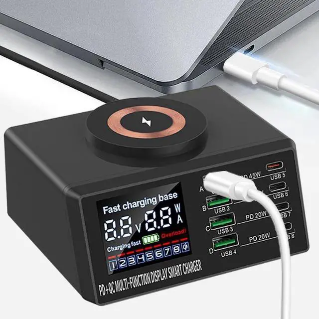 110W USB C Fast Charger: Usb charging station ports detect your devices automatically and deliver the fastest possible charge for any device. with QC 3.0 port, PD port, Wireless charging, maximum 110W, when your mobile phone has wireless charging function, you can use wireless charging, which is very convenient charging station.