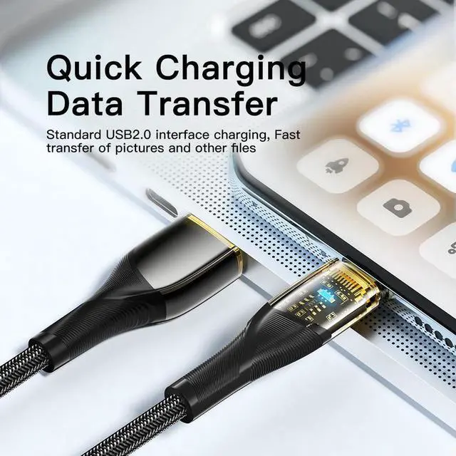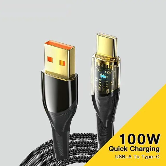 7A 100W USB A to USB C Cable Transparent ,Type A to Type C Cable, USB-C Fast Charging Cable Compatible with MacBook Air/Pro, iPad Pro 12.9/11/Air/Mini, Samsung Galaxy (1-Pack, 6.6ft)