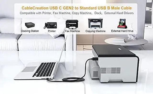 USB-C to USB-B s a computer with a USB Type C port to an external hard drive, docking station or USB switch with a USB 3.0 Type B port;